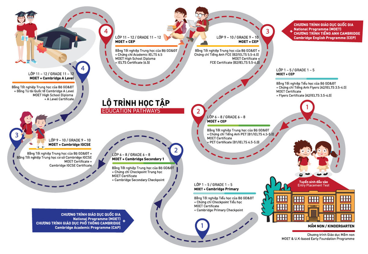Become an excellent and constantly evolving school system – which provides students with a solid foundation through the harmonious combination of the National Education Program and the International Education Program, Successfully at higher levels of education and in life, while preserving traditional values of Vietnam.